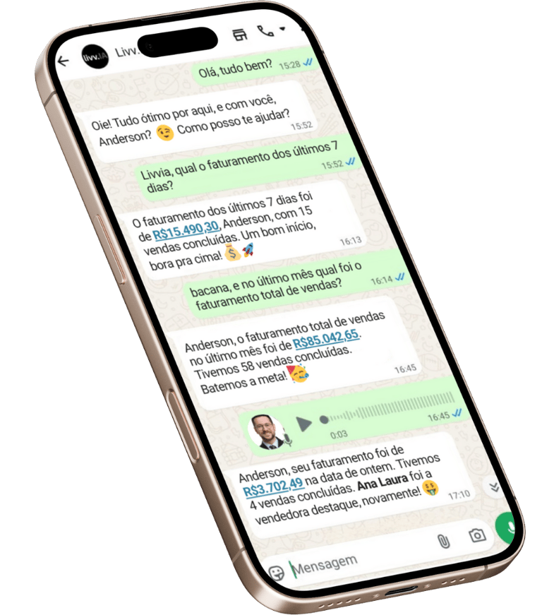 Você só precisará se preocupar em ver os insights para tomar a melhor decisão estratégica para sua empresa - e se tiver longe do computador, chama a Livv.IA no Zap que ela te passa tudo.